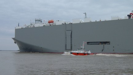 On the way up we had a chance to admire the variety of boat traffic on this major waterway. Boats large and small went by, including a commercial transport truck carrier and a gigantic car freighter.