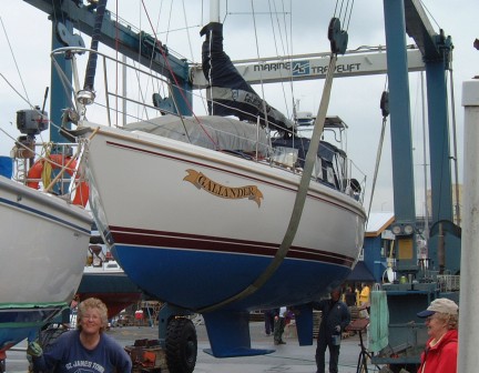 The baby was due about June 7th. We arranged our annual haul out at Granville Island in Vancouver on Friday, May 24th. We don’t normally go to Vancouver for our annual maintenance. Canoe Cove on Vancouver Island is much closer and can be reached in about 4 hours under almost any weather conditions. Going to Granville Island, on the other hand, involves an 8-hour crossing of the Strait of Georgia, which occasionally can be quite uncomfortable. But we had motivation! Last year at the Catalina Rendevous we won a free hull cut polish and wax job if we let a company on Granville Island paint the bottom at their regular price. Normally we paint the bottom ourselves but Eleanor has had enough of that messy business and jumped at this excuse to have someone else do the work. The weather was favourable and we made a nice trip out of it, cruising up the Gulf Islands to Degnan Bay on Gabriola Island to visit relatives there and then making a much more direct crossing from there in about 6 hours.